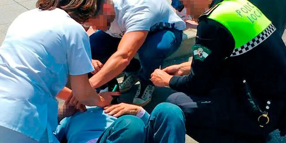 En el momento de la llegada de los policías se encontraba tendido en el suelo el conductor del ciclomotor, atendido por el personal sanitario de la Clínica Serman, que habían salido al exterior al oír gritos procedentes de la calzada.