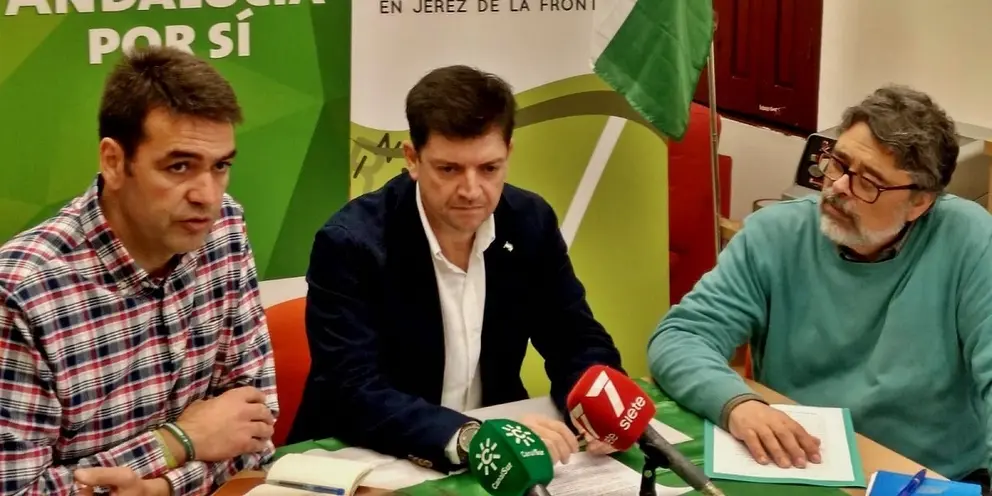 El coordinador nacional de Andalucía Por Sí (AxSí), Joaquín Bellido, y el portavoz municipal en Jerez, Jaime Núñez, han presentado hoy en la sede de la Asociación de la Prensa a José Antonio López como candidato andalucista a la alcaldía en las elecciones municipales del próximo 26 de mayo.