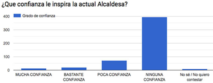 Con una valoración de 9,1 sobre 10, la falta de trabajo se erige como primer problema de la ciudad para los participantes de la encuesta. La mala gestión municipal con 8,7, y la Alcaldesa con 8,5, siguen al desempleo como principales problemas de la ciudad.