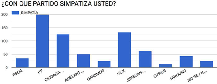 A dos meses de las elecciones municipales que se llevarán a cabo el domingo 26 de mayo, la encuesta valora la opción de un cambio de gobierno llevado a cabo por Populares junto a Ciudadanos, no descartando la entrada en liza de Vox. Si bien, la puntuación lograda por PSOE es escasa entre los participantes que han cumplimentado el cuestionario, no se puede llegar a descartar que Mamen Sánchez logre de nuevo obtener una mayoría necesaria junto a Ganemos y Andalucía Adelante (Podemos e IU). El futuro de Jerez sigue en el aire.