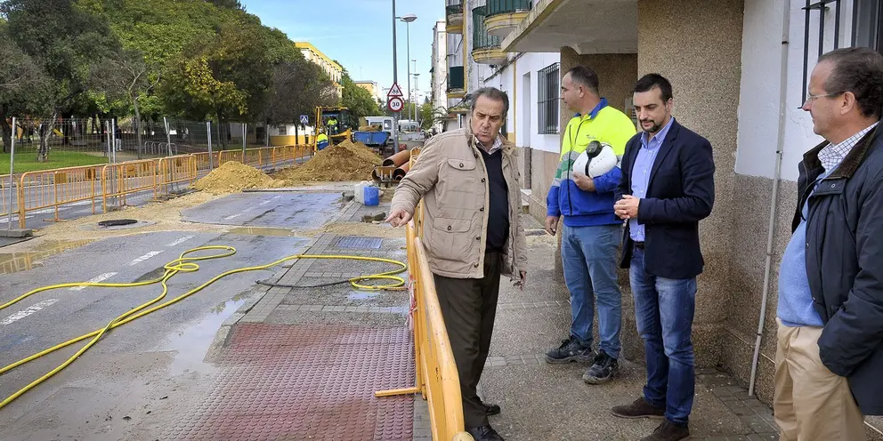 Junto al teniente de alcaldesa han asistido a la visita el presidente de la asociación de vecinos de La Plata, Antonio Ramos, y los directores técnicos de Aquajerez Alfonso Lozano y David Muñoz.