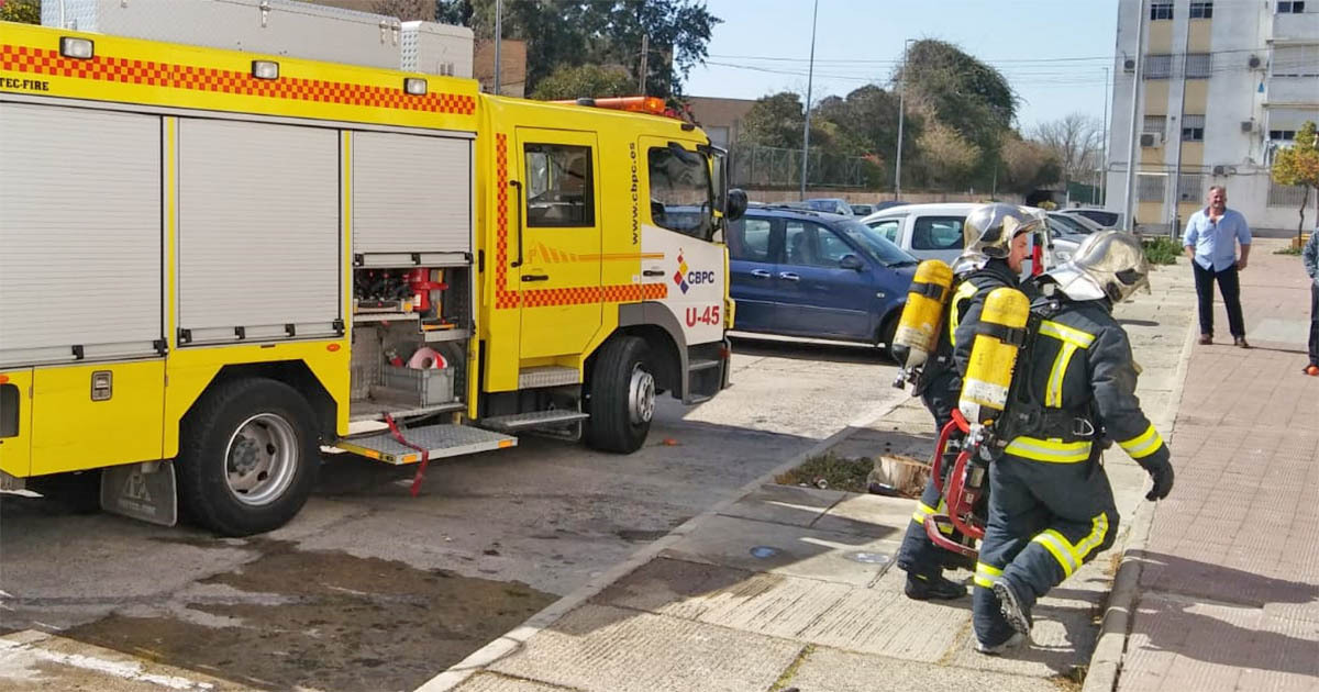 Bomberos del parque de Jerez han intervenido en el incendio originado en el patio trasero del bajo de un bloque de viviendas. Recibieron el aviso a través de la llamada a la Sala de Emergencias de la Policía Local.