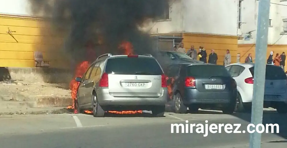 Sale ardiendo un coche en la barriada del Carmen