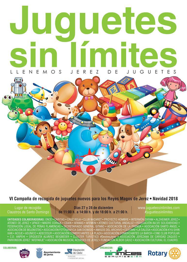 Los Claustros de Santo Domingo de Jerez acogen esta semana la VI Campaña “Juguetes sin límites” de recogida de juguetes nuevos para los Reyes Magos de Jerez. La campaña está organizada por Sinlímites Comunicación y el Club Rotary Jerez, con la colaboración del Ayuntamiento de Jerez y la Diputación de Cádiz, con el objetivo de contribuir a que todos los niños de Jerez puedan recibir y estrenar juguetes el próximo 6 de enero.