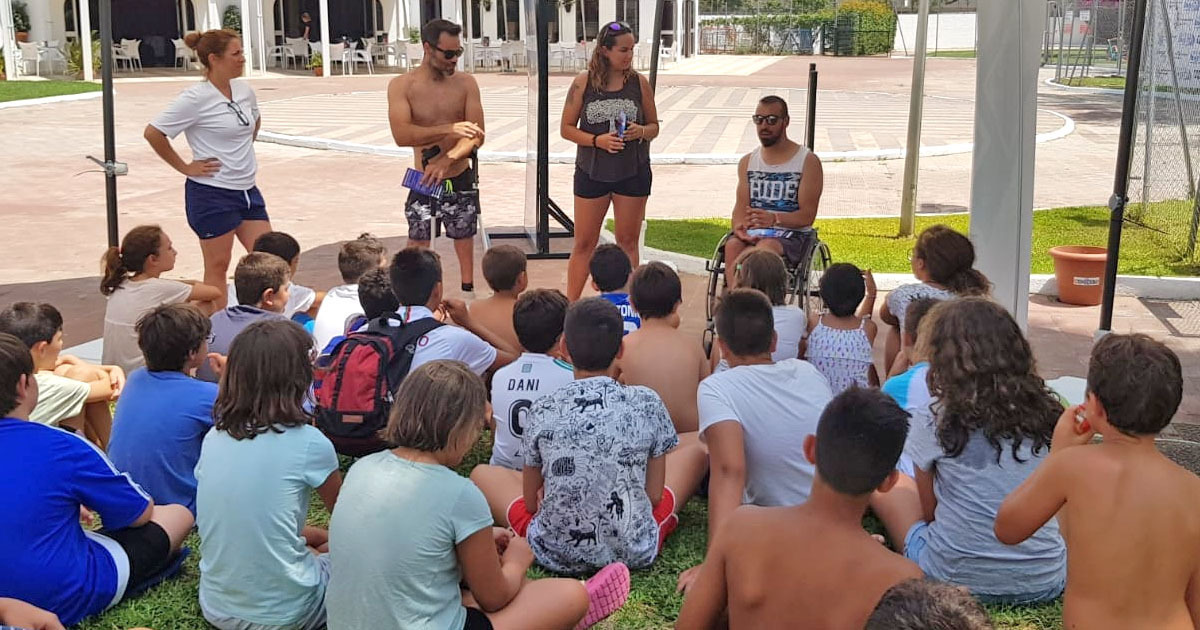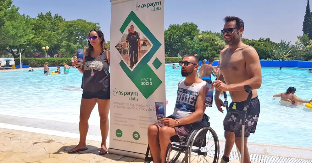 Aspaym Cádiz conciencia a los bañistas de Piscinas Jerez sobre las 'Zambullidas'