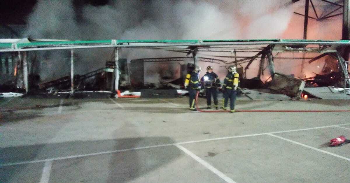 Las llamas han calcinado en plena madrugada un stand instalado en el interior con 23 motos eléctricas de baterías de litio