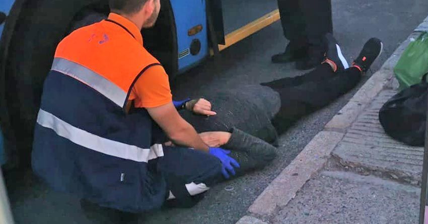 La señora no ha perdido la conciencia a pesar del aparatoso golpe, sintiéndose además preocupada ante la mirada de indignación de los pasajeros del autobús, quienes rogaban que fuera asistida por un equipo médico.