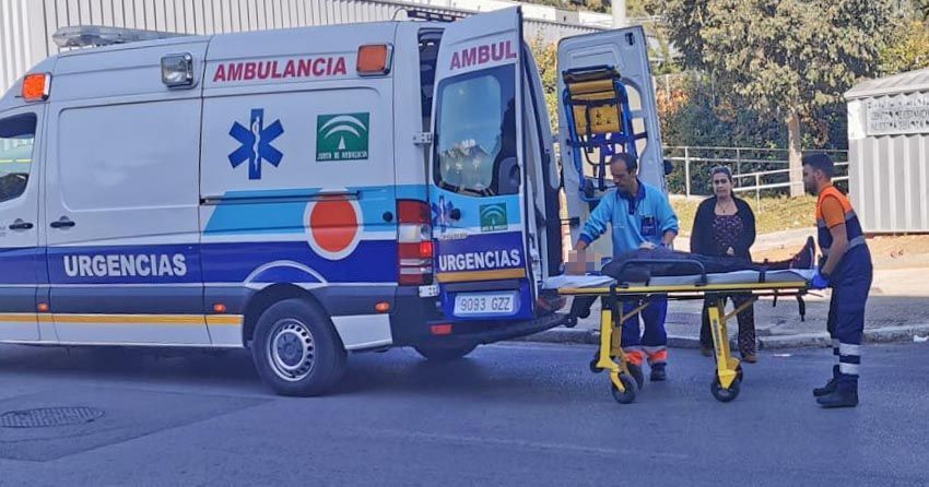 Tras ser atendida in situ por los servicios sanitarios, ha sido llevada en camilla hasta la ambulancia y trasladada a Urgencias del Hospital Universitario de Jerez.