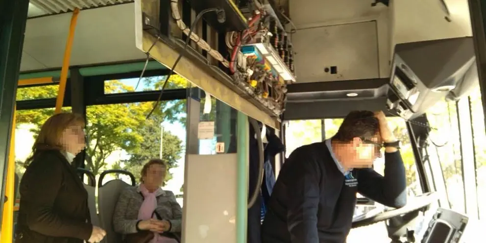 Cae parte del techo de un autobús urbano de la Línea 10 encima del conductor