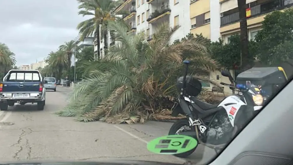 Jerez permaneció envuelta en un temporal de mal tiempo y viento este pasado viernes 2 de octubre que ha provocado la caída de ramas por toda la ciudad. En este sentido, el mayor problema se ha encontrado en la caída de una palmera en la avenida Alcalde Álvaro Domecq.