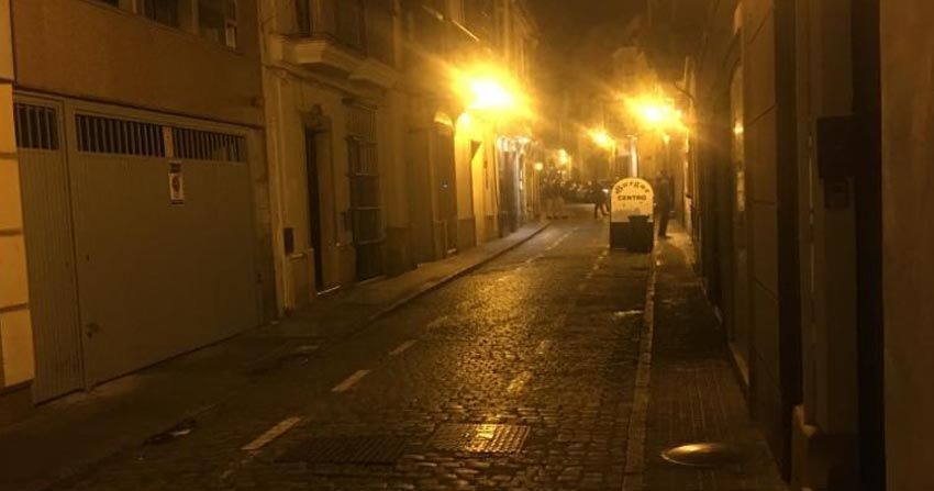Calle San Pablo de Jerez vacía el viernes por la noche que comienzan los micrófonos a medir el ruido