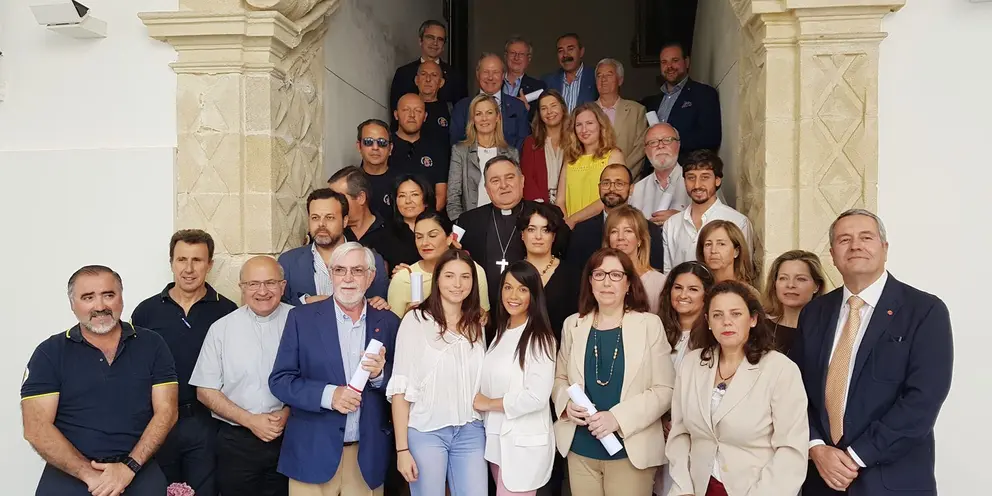 En este acto han estado presentes monseñor José Mazuelos, obispo de la Diócesis de Asidonia-Jerez, Francisco Domouso, director de Cáritas Diocesana de Asidonia-Jerez y Antonio López, delegado episcopal, así como los representantes de las diferentes empresas que han recibido dicho reconocimiento y las que lo recibieron anteriormente.