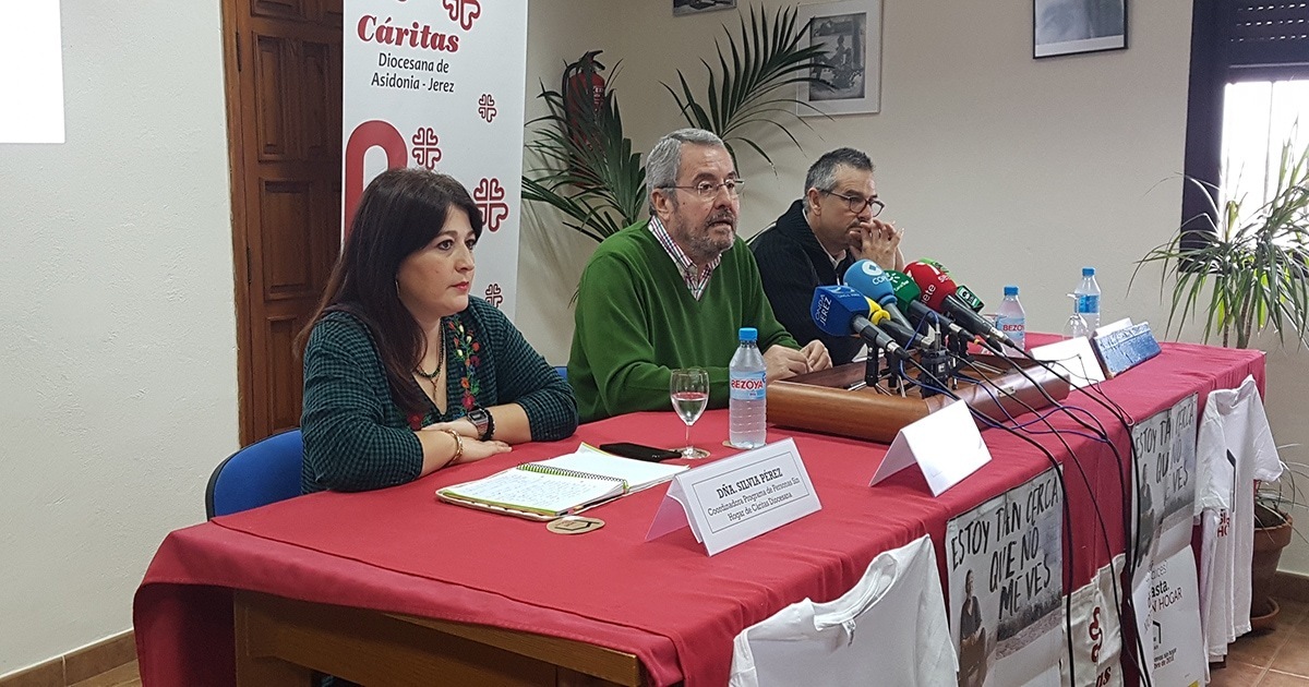 En la presentación de esta campaña anual han estado presentes Francisco Domouso, director de Cáritas Diocesana de Asidonia-Jerez, Silvia Pérez, coordinadora del Programa de Personas Sin Hogar de Cáritas Diocesana y Tomás Bermúdez, participante del Centro de Día “El Salvador”.