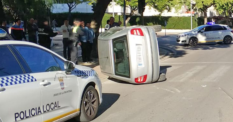 Choca con otro coche en pleno Jerez y acaba volcando