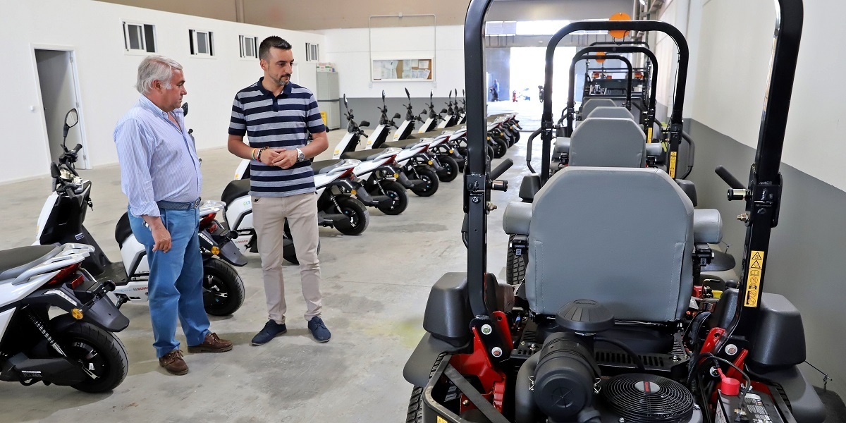 El teniente de alcaldesa de Sostenibilidad, Participación y Movilidad en funciones, José Antonio Díaz, ha visitado las nuevas instalaciones de la empresa OHL-Ingesan S.A., concesionaria del servicio de mantenimiento de los parques y jardines de la ciudad, ubicadas en la Ciudad del Transporte en una nave de mil metros cuadrados. El teniente de alcaldesa ha supervisado también los 16 nuevos ciclomotores totalmente eléctricos que se incorporarán al servicio a lo largo de esta semana.