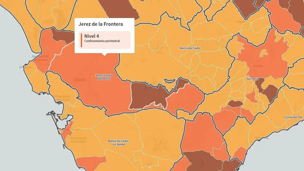 La ciudad de Jerez de la Frontera se encuentra en nivel 4 de Alerta Grado I, superando los 500 casos de contagios de Covid-19 por cada 100.000 habitantes. En este sentido, según las nuevas medidas en Andalucía se ve afectado por el cierre perimetral del municipio. Solo se podrá acceder o salir de Jerez por causa justificada.