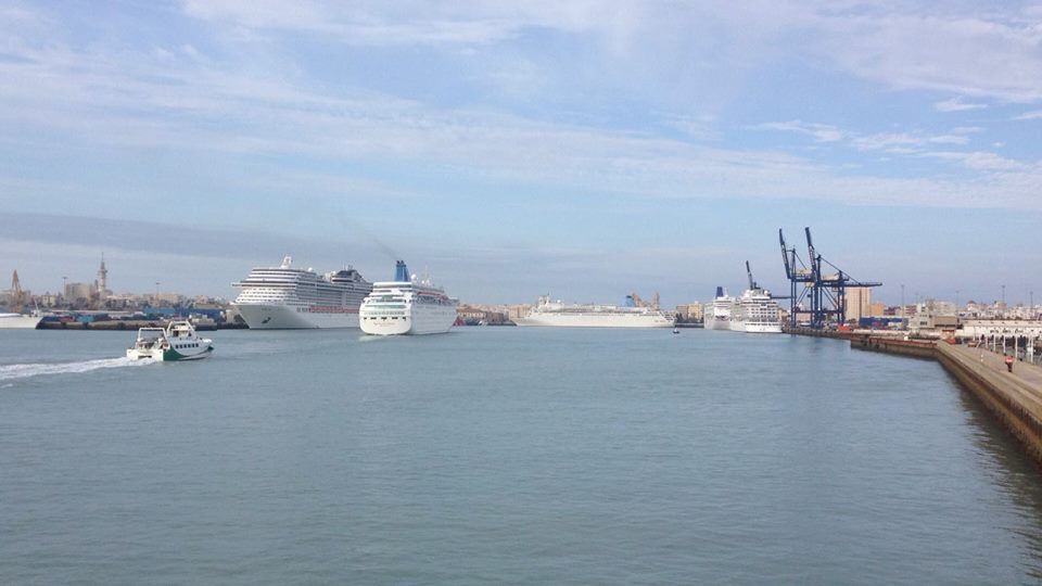 Más de 12.000 personas, entre pasajeros y tripulantes, han llegado hoy a la ciudad a bordo de cinco cruceros. Entre las 7 y las 8 de la mañana ya habían efectuado su atraque los cuatro primeros. El Oriana, atracado en el muelle Alfonso XIII, ha sido el más madrugador. Procedente de Southampton, ha arribado con 1731 pasajeros y 798 tripulantes, que permanecerán hasta aproximadamente las cinco de esta tarde, cuando partirán con rumbo a Marsella.