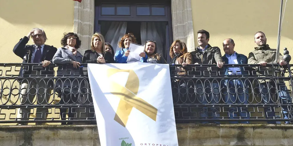 La alcaldesa de Jerez, Mamen Sánchez, ha colocado esta mañana en el balcón del Consistorio el lazo dorado con motivo del Día Internacional del Cáncer Infantil, que desde 2001 se conmemora el 15 de febrero, con el objetivo de sensibilizar y concienciar a la sociedad sobre la importancia de esta problemática y la necesidad de un diagnóstico inmediato y un tratamiento adecuado.