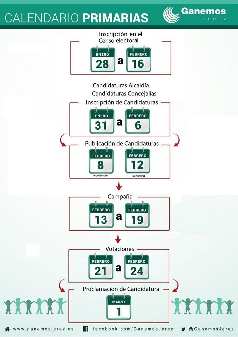 Puntualmente se irá informando de cómo transcurren las distintas fases del proceso, la campaña electoral, las votaciones desde la página web de Ganemos Jerez, donde se podrá realizar la inscripción en el censo electoral y la posterior votación. También se podrán realizar presencialmente tanto la inscripción en el censo como el acto de votación, para lo que se habilitarán puntos de inscripción y mesas electorales.