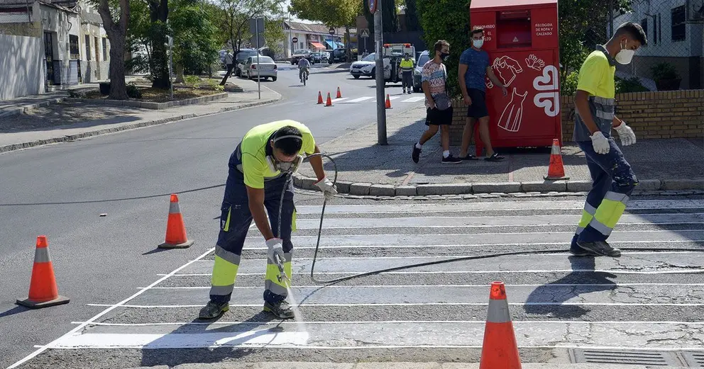 Los trabajos se han iniciado en las inmediaciones de los colegios Manuel de Falla y Jesús María La Asunción. Continuarán en los próximos días en el resto de centros escolares que precisen del repintado de los pasos de peatones.