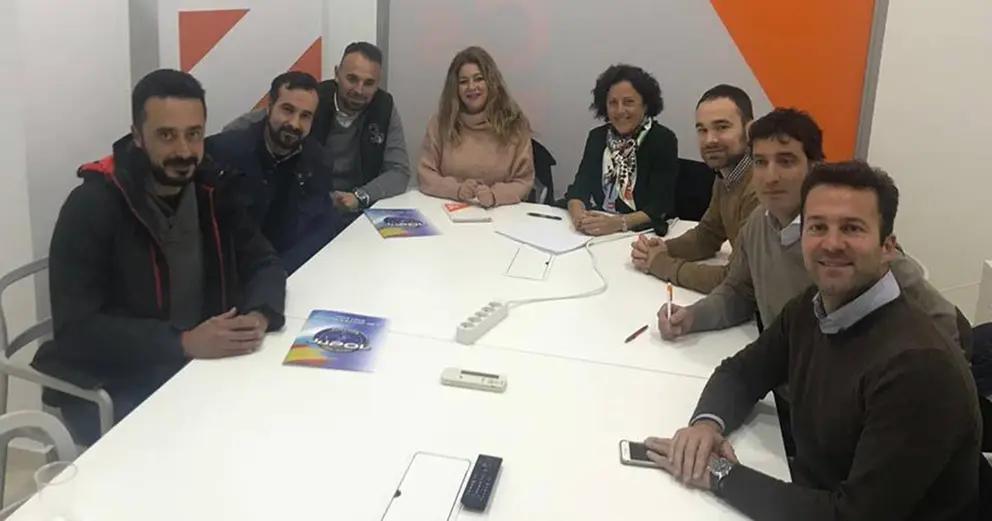 El portavoz municipal de Ciudadanos (Cs) Jerez, Carlos Pérez, junto al coordinador de la agrupación, Jesús García, y miembros de la junta, Esther Mariscal y Montserrat Hoces, se han reunido con los portavoces de Jusapol, Oscar Troya, Patricio Moreno y Miguel López, con la intención de conocer de primera mano cuáles son sus principales reivindicaciones.