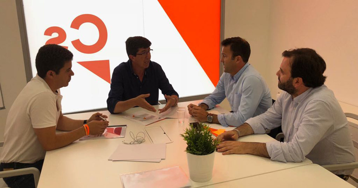 El portavoz del Grupo Parlamentario de Ciudadanos (Cs), Juan Marín, junto al diputado autonómico, Sergio Romero, se han reunido hoy martes con el portavoz y concejal del Grupo municipal de Ciudadanos Jerez, Carlos Pérez y Mario Rosado con la intención de conocer cuál es la situación actual del Ayuntamiento y cuáles son los proyectos que la Junta de Andalucía está bloqueando en Jerez.