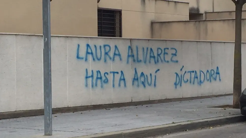 Las pintadas dirigidas a Laura Álvarez, delegada de Personal del Ayuntamiento de Jerez, tachan, con falta de ortografía incluida, de fascista y dictadora a la edil.