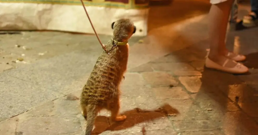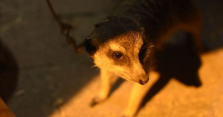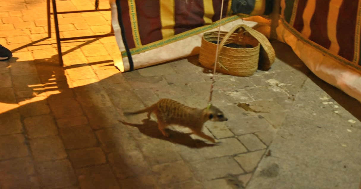 Interponen denuncia en Comisaría tras ver a suricatos amarrados, fotos con flash a halcones y búhos, una pitón en un alcorque de un árbol...