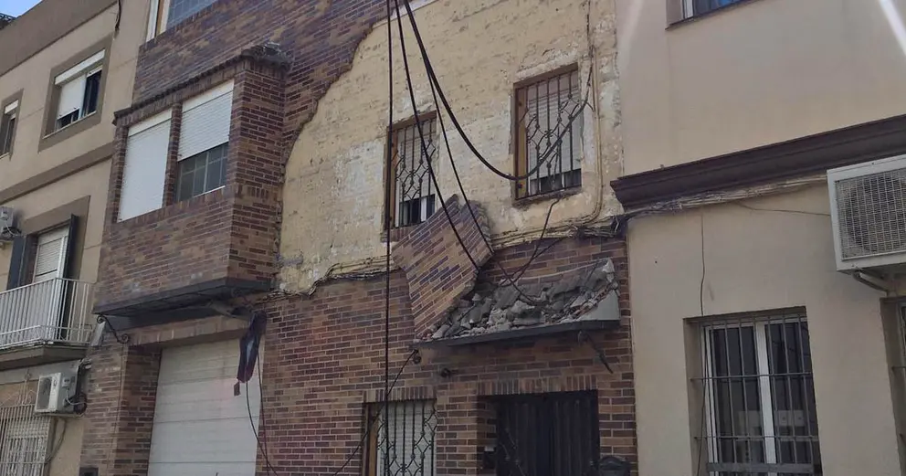 El derrumbe de parte de la fachada de una vivienda ha causado daños materiales en dos vehículos que se encontraban debidamente estacionados.