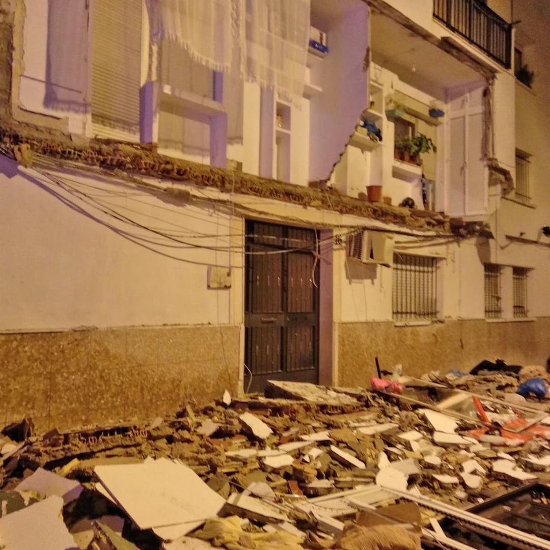 El edificio tuvo que ser desalojado. Hasta el lugar acudieron unidades de la Policía Local y dotaciones de Bombero, quienes inspeccionaron la zona, y con ayuda del vehículo escala procedieron, con herramientas eléctricas, a retirar los restos que tenían peligro de caída, así como a sanear otros balcones que se encontraban con riesgo de desprendimientos.