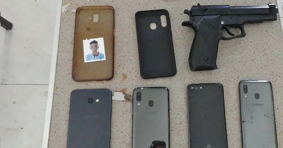 Así pues tras ser detenidos como presuntos autores de un delito de robo con fuerza en domicilio habitado, se procedió a la entrada y registro de la vivienda ocupada, en la cual se hallaron objetos procedentes del robo a la vivienda afectada así como un arma de fuego simulada, joyas y 7 terminales telefónicos que los investigadores tratan de determinar si proceden de otros hechos delictivos.
