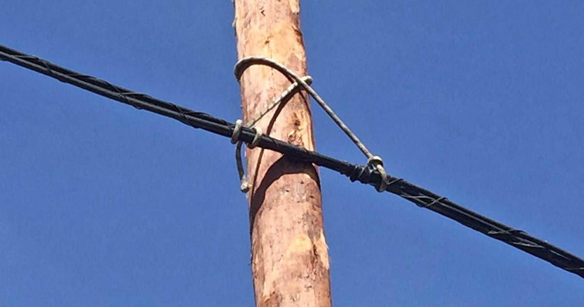 Indican el mal estado de un poste de madera destinado a la sujeción del cableado correspondiente a telefonía, con un alto grado de deterioro extremo: "estos tipos de postes en los días de viento realizan movimientos bruscos y peligrosos de amenaza de rotura y