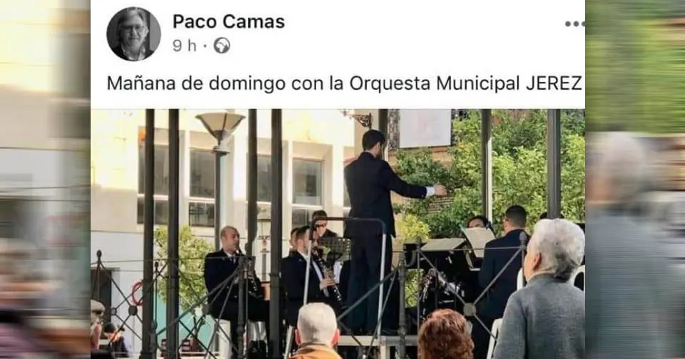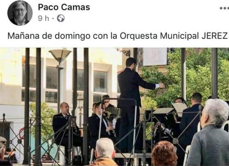 Paco Camas (PSOE) publica tras presenciar el concierto de la Banda: “domingo de concierto de la Orquesta Municipal Jerez”