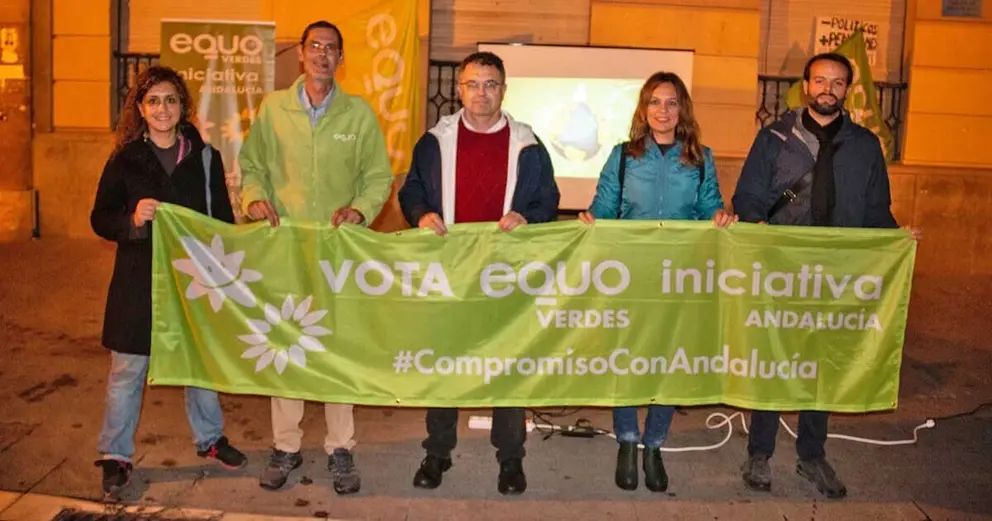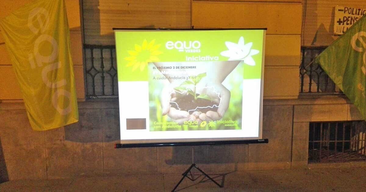 La pasada noche, el Partido ecologista EQUO, que se presenta a las próximas elecciones andaluzas en coalición con Iniciativa Andaluza, eligió nuestra ciudad para el tradicional acto de pegada de carteles, que sustituyó, por motivos ecológicos como explicaron, por una proyección del vídeo de campaña y de las fotos de sus candidatos y candidatas al Parlamento Andaluz.