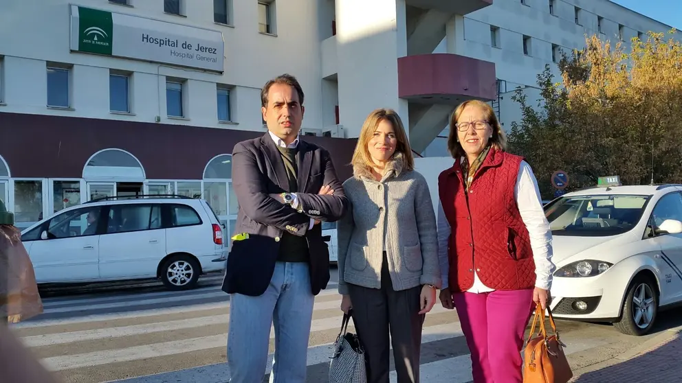 Los diputados andaluces del PP de Cádiz, Antonio Saldaña y Ana Mestre, junto a miembros de la dirección local del PP de Jerez, han visitado esta mañana el hospital de Jerez para hacer seguimiento del estado del centro a raíz de las constantes quejas y denuncias de los profesionales ante la falta de medios y personal.