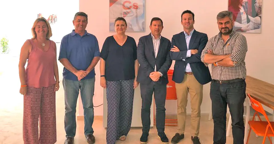 El portavoz del grupo municipal de Ciudadanos Jerez, Carlos Pérez, junto a miembros de la Junta Directiva de la formación naranja como su coordinador, Carlos Puerto, y el responsable de asociaciones y entidades, Rafael Flores, se han reunido de nuevo con miembros del Clúster Turístico Destino Jerez, encabezado por su presidente Antonio Mariscal, además de Miriam Morales y Jose Contero.