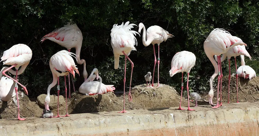 El Zoobotánico de Jerez asiste estos días al nacimiento de nuevas crías de flamencos. La colonia de esta especie se encuentra, de hecho, en plena época de reproducción.