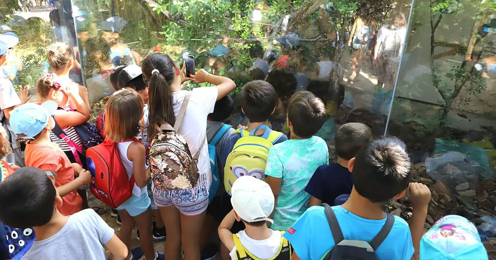 El Zoobotánico Jerez ha recibido la visita de tres grupos con un total de 375 personas, la mayoría niños y niñas que participan en las escuelas de verano de Distrito Sur y Torrecera, así como del programa de ‘Vacaciones en Paz’ de la Asociación Amirahui.
