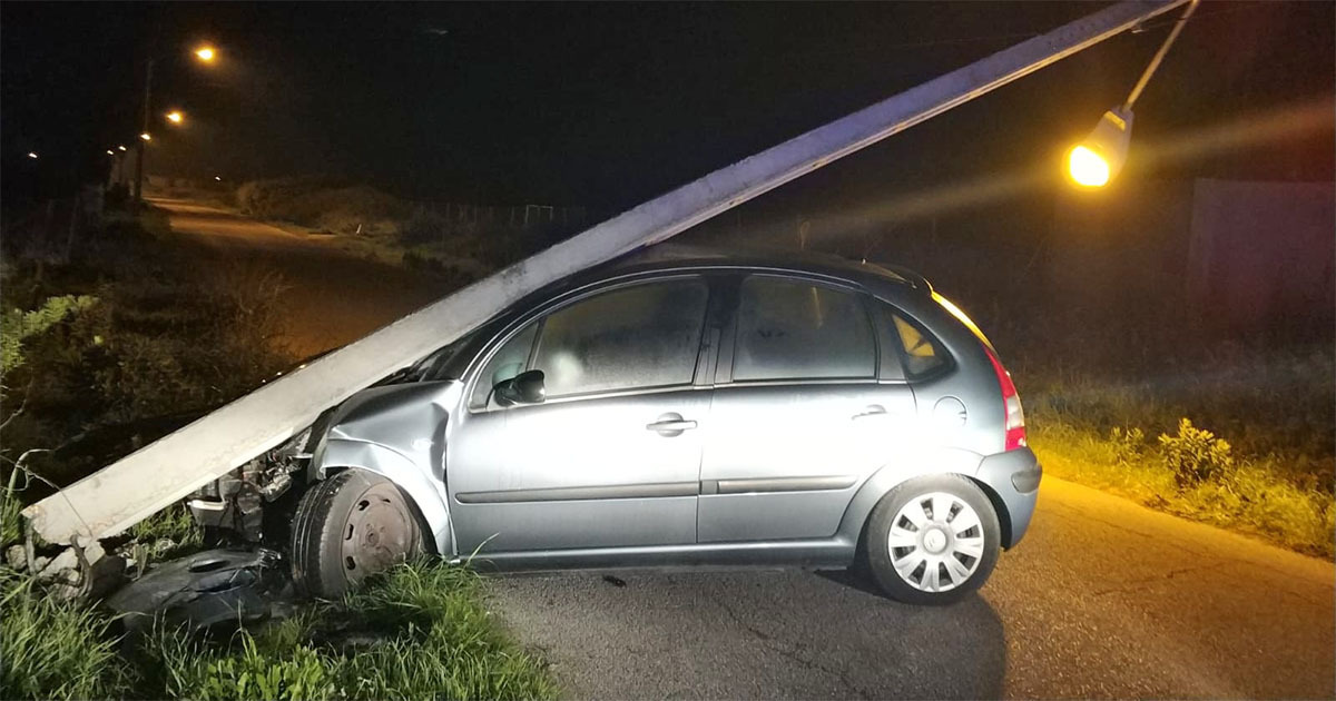Un vehículo se ha salido de de la calzada, estampándose contra una farola, la cual ha dañado visiblemente y doblado, cayendo sobre el techo del propio vehículo.