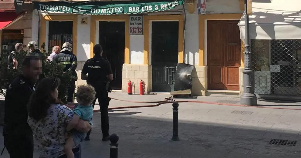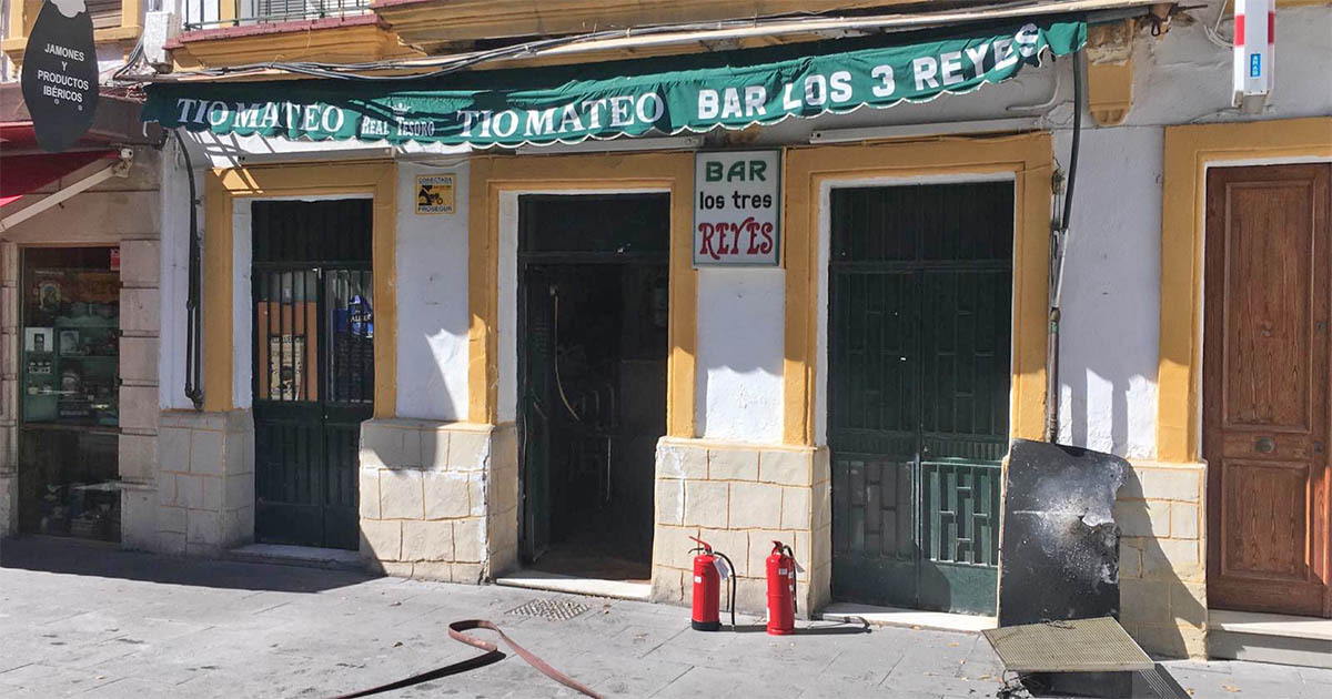 En llamas un conocido local de restauración del casco histórico de la ciudad, el Bar Los Tres Reyes. El fuego se ha originado en una freidora, extendiéndose las llamas al extractor de humo.