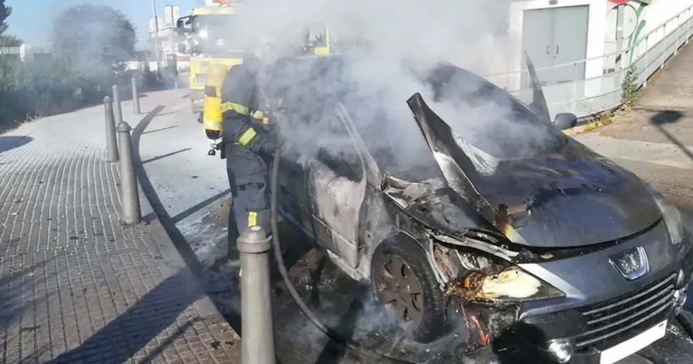 El coche quedó calcinado pese a la rápida actuación de los bomberos que se desplazaron hasta el centro hospitalario.