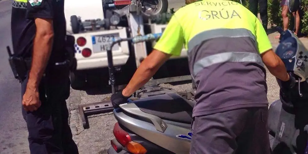 El ciclomotor fue inmovilizado y retirado por la grúa, siendo trasladado a los depósitos municipales en el polígono Industrial de El Portal.
