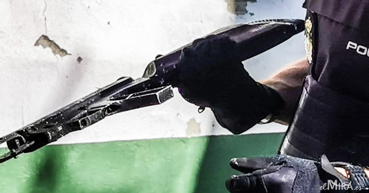 Para sorpresa de bomberos, en el interior se encontraba un perro y un rifle de asalto, por lo que fueron avisados agentes de Policía Nacional para investigar sobre los hechos.