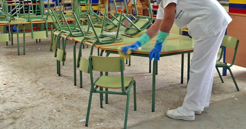 deben limpiar decenas de aulas o incluso varios colegios en tiempo récord y con materiales de