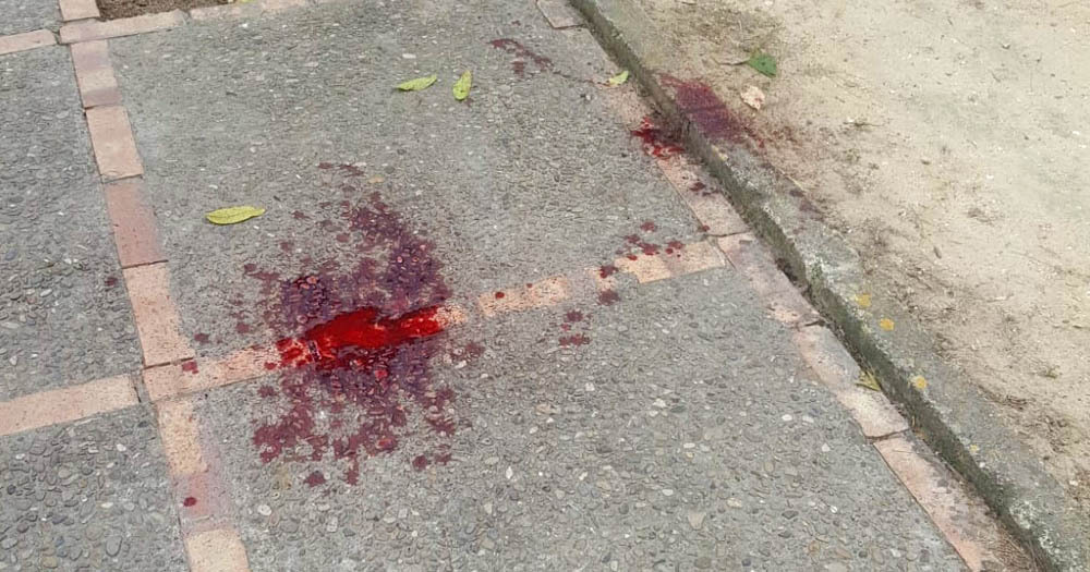 Sangre en el acerado de la Avenida de Lebrija, Jerez, donde se ha producido la agresión a dos mujeres | elMIRA.es