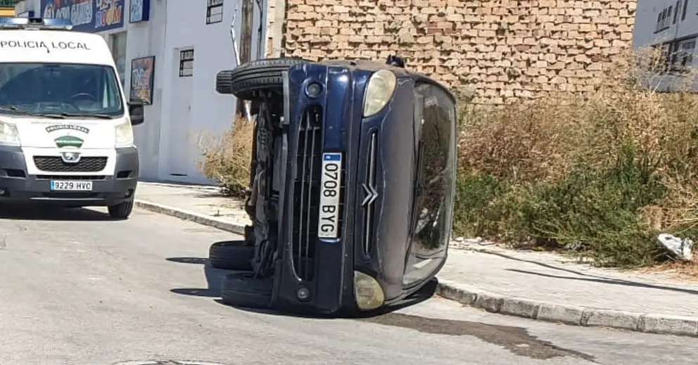 Un accidente ha podido causar una tragedia en la tarde de este lunes, 13 de julio, en Jerez de la Frontera. Un conductor ha perdido el control del vehículo, golpeando a varios coches estacionados y ha terminado volcando.