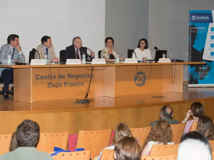 Organizado por el Colegio, en colaboración con los servicios de formación de Audiolís, la jornada se desarrolló en el salón de actos del Edificio Heracles de la Zona Franca de Cádiz. Inmaculada Astorga, responsable del departamento de gestión y administración de contratos de formación de Audiolís, desarrolló el concepto de formación acorde con el puesto de trabajo. Según su criterio, “en Andalucía existe una paralización bastante acentuada a la hora de expedir la correspondiente autorización para que las empresas puedan formalizar este tipo de contratos, extremo que no ocurre en otras comunidades autónomas”.