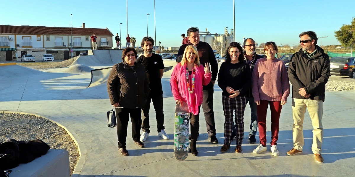 La alcaldesa, Mamen Sánchez, junto a la teniente de alcaldesa de Recursos Humanos, Empleo y Deportes, Laura Álvarez, así como a la alcaldesa-presidenta de Guadalcacín, que asistió junto a miembros de su corporación, han inaugurado el Skate Park de la citada ELA y que, igualmente, es el primero ubicado de estas características en la zona rural de Jerez.