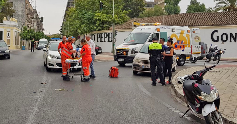 Una mujer de 62 años de edad que viajaba como pasajera en el ciclomotor ha resultado herida de consideración, siendo atendida in situ e inmovilizada por los servicios sanitarios, y posteriormente trasladada al Hospital de Jerez.