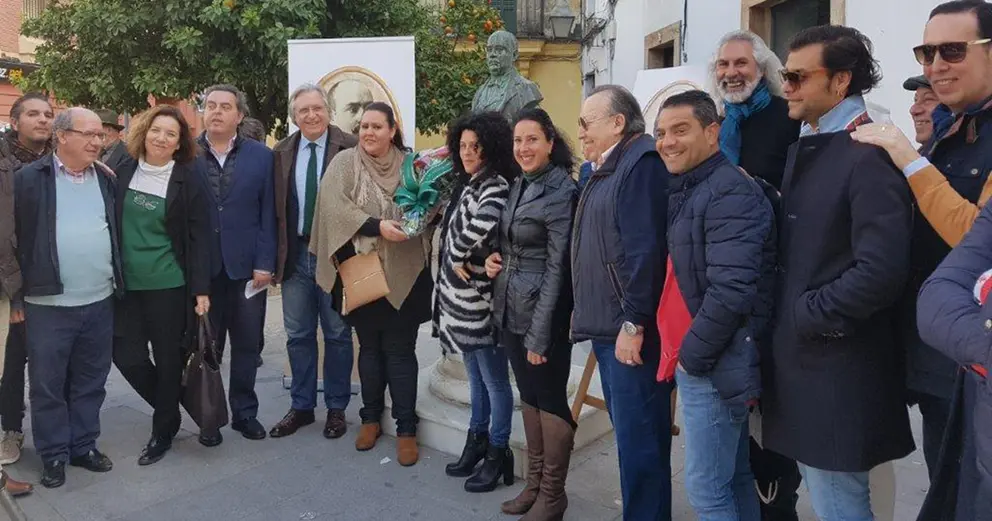 El teniente de alcaldesa de Urbanismo, Dinamización Cultural, Patrimonio y Seguridad, Francisco Camas, junto al presidente del Centro Cultural Flamenco Don Antonio Chacón, Juan Alfonso Romero, así como representantes de las peñas de la ciudad, de la Federación Local y artistas, ha participado en el acto de inicio de la conmemoración del 150 aniversario del nacimiento de Antonio Chacón (1869-1929), que ha tenido lugar en el busto del cantaor jerezano, ubicado en la plaza Antón Daza del barrio de San Miguel, donde nació el artista. Francisco Camas ha subrayado “que es obligatorio recordar a uno de nuestros grandes creadores, figura fundamental del flamenco”.
